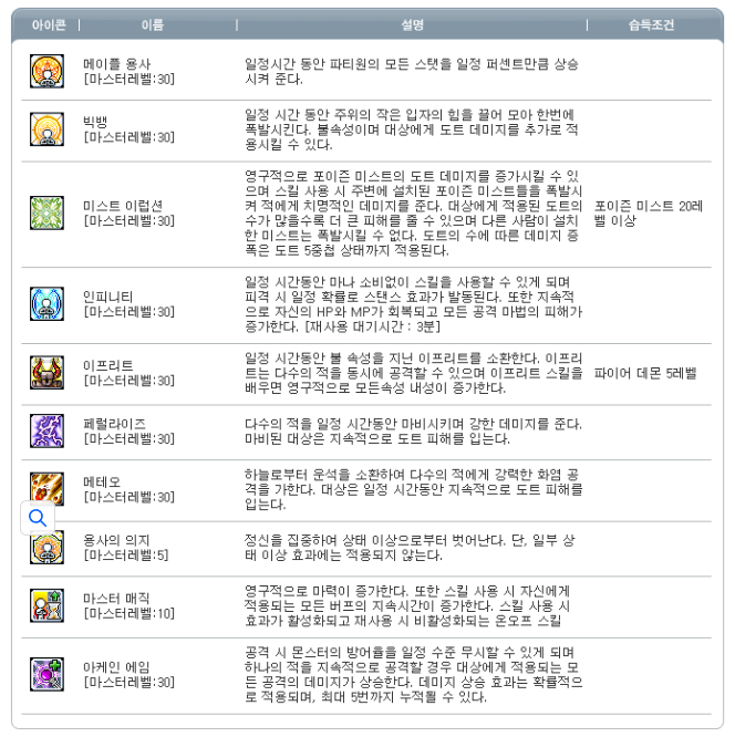 다만 처음하시는 분들은 이 글이 도움이 되길 바라며 옛날 메이플스토리 모험가 마법사 계열 아크메이지썬콜 스킬트리를 마치겠습니다.